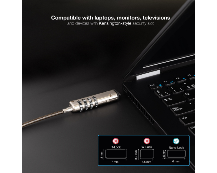 OJO: Solo válido para dispositivos con ranura de seguridad tipo NANO (no válido para ranuras tipo T-LOCK ni WEDGE)