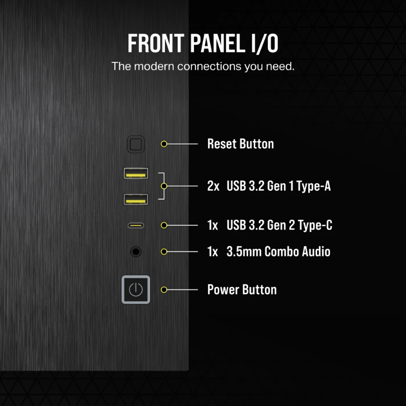 Case Front IO: (1x) USB 3.1 Type-C, (2x) USB 3.0, (1x) Audio in/out